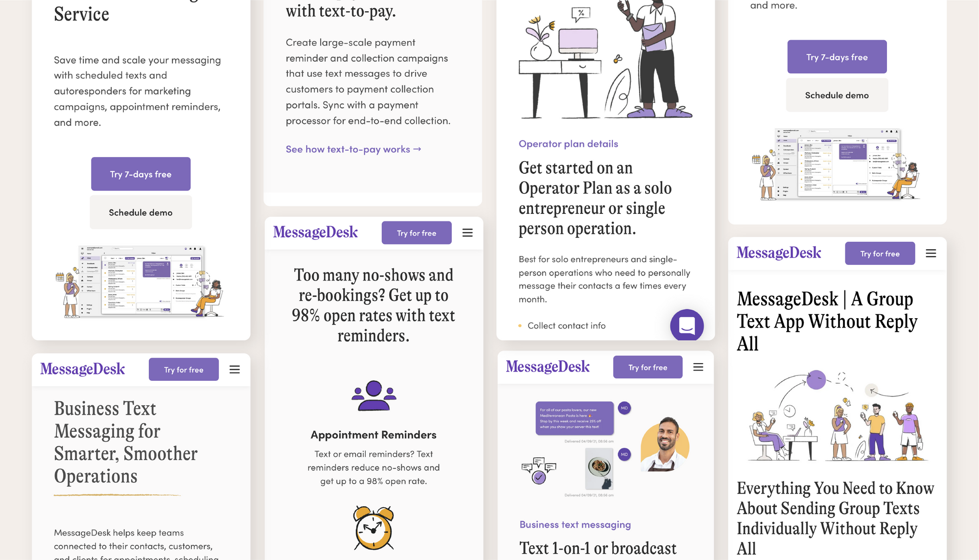 MessageDesk is a connection-driven messaging company servicing small businesses and teams based in Reno, NV. The company came to us for the redesign of their brand identity, website design, strategy, and illustrations.